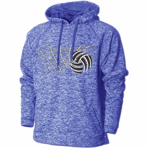 Royal Blue Heather Performance Fleece Hoodie w/ Net & Ball Volleyball Design