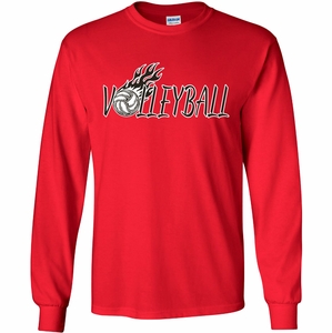 Volleyball Flames Design Long Sleeve Shirt - Choice of 20 Shirt Colors