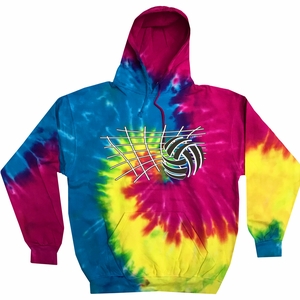 Net & Ball Design Tie Dye Volleyball Hooded Sweatshirt - in 5 Colors