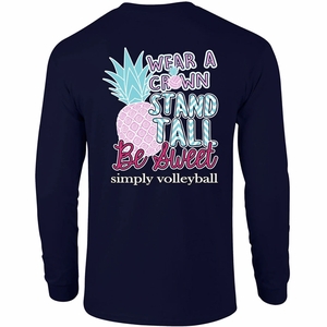 Volleyball Long Sleeve Shirt - Wear A Crown Design in Navy Blue