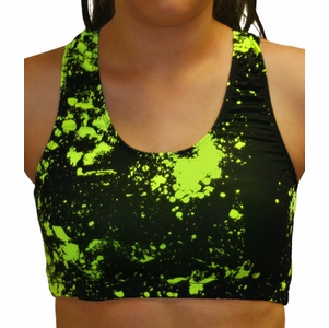 Black & Highlighter Yellow Paint Splatter Sports Bras